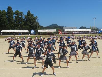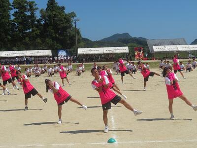 午後のスタートは各団の団結力の見せ場。団演技で楽しく踊ります!