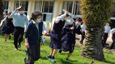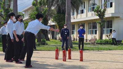 避難後は、日南市消防署の職員を講師として迎え、避難時のポイントや