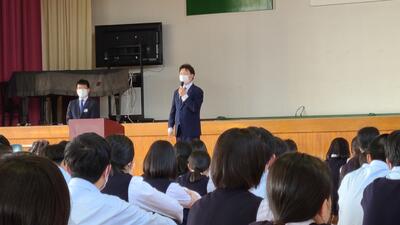 その後、交通マナーアップ教室を行い、通学形態別に注意することを確認しました。