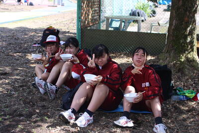 折り返し地点の蜂の巣キャンプ場では、PTAの方々が作ってくださった豚汁をいただきました。