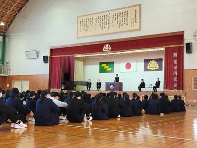 3月16日木曜日の午後、体育館にて卒業生の話を聞く会が行われました。