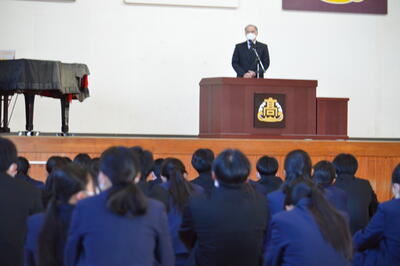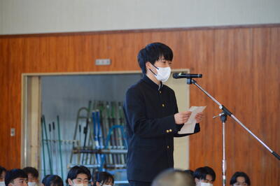 週末の13日(土)・14日(日)に共通テストを控えている3年生に対し、校長先生と1・2年生の代表がそれぞれ激励の言葉を贈りました。