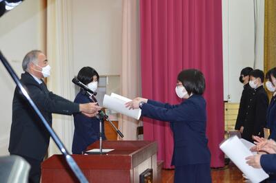 3年生は緊張した表情を時おり和らげながらも、校長先生・後輩からの激励を真剣に受け止めていました。