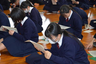 実感のこもった3年生からのメッセージを読む1・2年生の表情は真剣そのものでした。