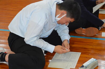 共通テスト自己採点を終えたばかりの3年生の所感をまとめたプリントを黙読し、これからの学習や