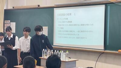 10月18日午後、普通科2年生が実施している総合的な探究の時間「郷土探究」の中間発表会が開催されました。
