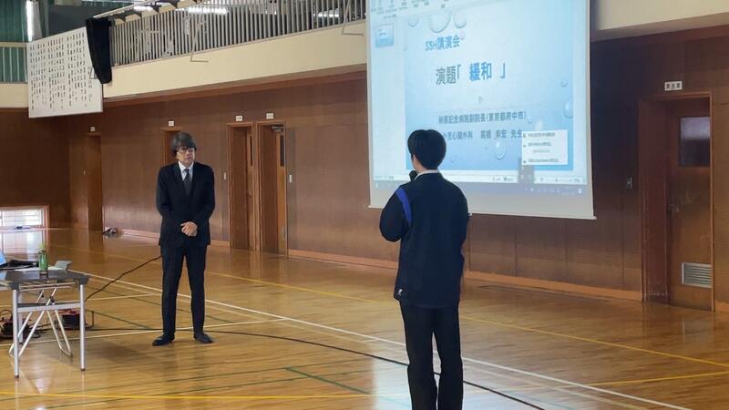 高橋さんは宮崎県日之影町のご出身で、なんと元UMKアナウンサー高橋巨典さんのお兄様です。何千人もの命を救ってきた高橋さんは、講演会の中で「前もって知るべきことは、前もって知る」ことを前提として、心臓の仕組みや小児心臓手術の方法を説明されました。その後、患者と家族への接し方やチーム医療、生徒たちに向けてキャリア・人格を形成していくために重要なことをお話してくださいました。