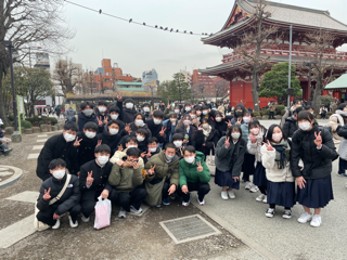 宮崎空港発着組は若干の飛行機の遅れがありましたが、両機とも無事、羽田空港に着きました。首都高速を走るバスの中で昼食のお弁当をいただき、その後、浅草周辺を散策しました。