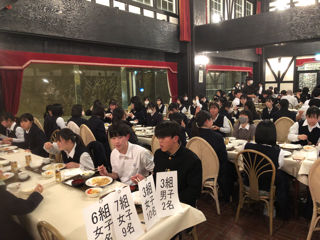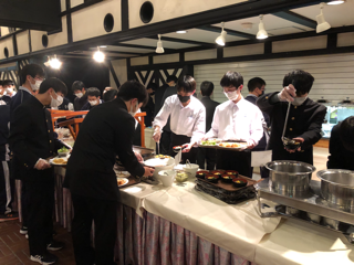 修学旅行初めての夕食です。ゲレンデを眺めながら、ビュッフェスタイルの夕食です。