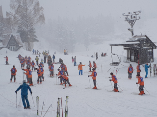 今日はスキー教室2日目。昨日にも増してパウダースノーでふかふかなスキー場。快晴にも恵まれ最高のコンディションでした。昨日習得した感覚とテクニックのまま、ほぼ全ての生徒がリフトに乗り込み高所からの滑走に挑戦してました。