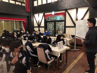 本日午後から、本校大会議室にて、第2回オープンスクールが行われました。夏に行われた第1回に参加することができなかった中学生を対象に募集をかけたところ、15名の中学生と9名の保護者の方々が参加してくれました。今回も第1回と同様に、広報委員の生徒が主体となり運営をしました。中学生は、篠田校長・広報委員2年井岡くんの挨拶を聞いた後、学校紹介動画を視聴し、座談会に参加しました。