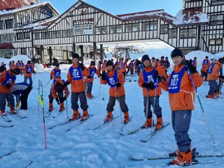 本日からスキー教室です。クラス毎の集合写真を撮影した後、開校式が行われ、班ごとにインストラクターによる教室が行われました。天候にも恵まれ、絶好のスキー日和でした。