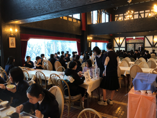 15:30終了時には生徒たちはヘトヘト状態。ホテル到着後すぐに入浴を済ませ、クラスごとに夕食。