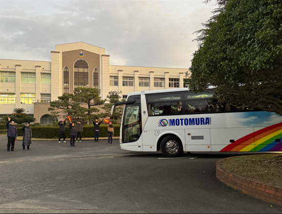 出発前の生徒たちは、待ちに待った修学旅行にとてもワクワクしている様子でした。出発の際は、本校職員と多くの保護者の方々とで、大きく手を振りながら送り出すことができました。生徒たちは、ニコニコしながら全力で手を振り返してくれました。