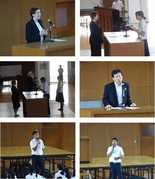 終業式に先立ち,表彰式とALTのジェシカ先生の離任式が行われました。