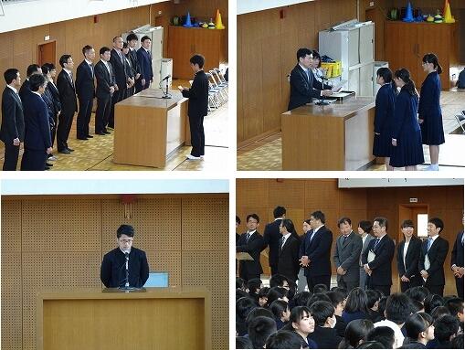 始業式に先立ち,17名の先生をお迎えし,新任式が行われました。
