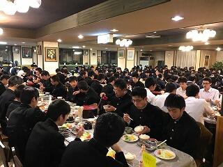 夕食の風景です。スキー研修も本日までです。