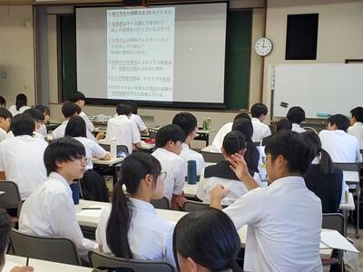 7月7日(日)に、県内SSH指定校である泉ヶ丘高校、宮崎西高校、延岡高校3校と幹事校である宮崎大宮高校との4校連絡協議会のキックオフ行事となる「東大でのディスカッション講義を体験しよう!」が、大宮高校視聴覚室で行われました。講師は東京大学教養学部非常勤講師、宇野健司先生です。先生は宇野ゼミという東京大学最大の宇野ゼミ(500名)にて教鞭を執られており、交換留学指導やディスカッション指導、就職活動指導に強いという評判の先生です。ディスカッションを通して問題解決型の論理的思考スキルを身につけるとともに、多様な人たちとのコミュニケーションを通して他者と協働することへの意欲を高める内容の講義でした。本校からは1年生6名2年生6名の計12名が参加し、県内トップの生徒達と肩を並べながら、一歩も引けを取らない熱い暑いディスカッションを繰り広げていました。このSSH指定校の中から、きっと未来の東大生、未来の県知事、未来の世界的な科学者が現れてくれることを期待して、次回の4校連参加を楽しみにしたいと思います!!