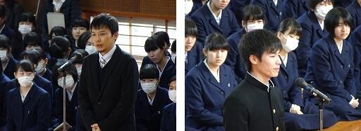 祝福の挨拶をされた後、卒業生代表の坂口磨哉さんが誓いの言葉を述べました。