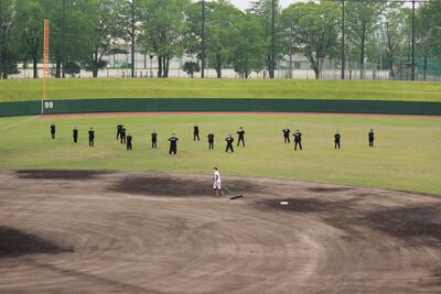 定期戦に向けて準備をしていた野球部,応援団の皆さん,