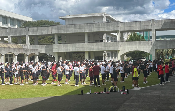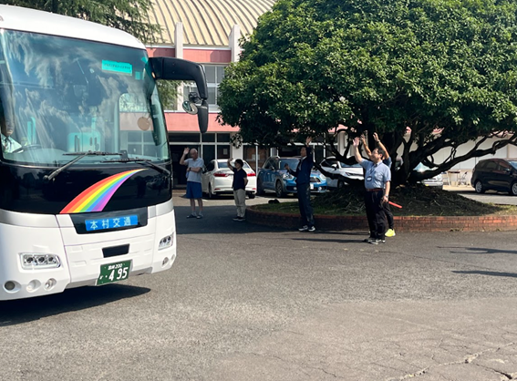 出発式で宮﨑校長は「修学旅行に行く目的を考えて、これからの6日間を過ごしてほしいと思います。物価が高騰している今、保護者の皆さんが高いお金を払ってくださるから修学旅行に行けます。しっかりと感謝の気持ちを持ちましょう。また、私自身もみなさんと共に、有意義な時間を過ごしたいと思います。」と挨拶をしました。