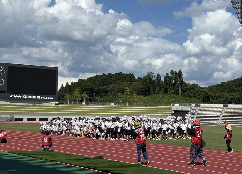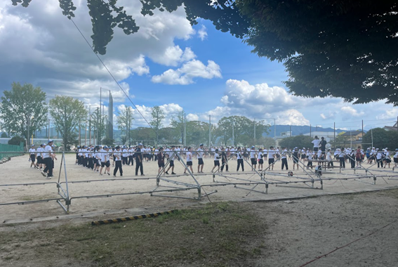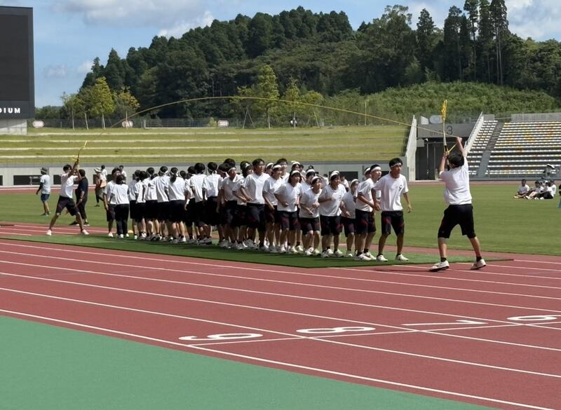 入道雲が湧き立つ空の下、生徒たちは練習の成果を存分に発揮し、スタジアム内は熱気と歓声に包まれました。各団・各学年・各クラスが一致団結して競技に臨み、応援席からも力強いエールが送られました。
