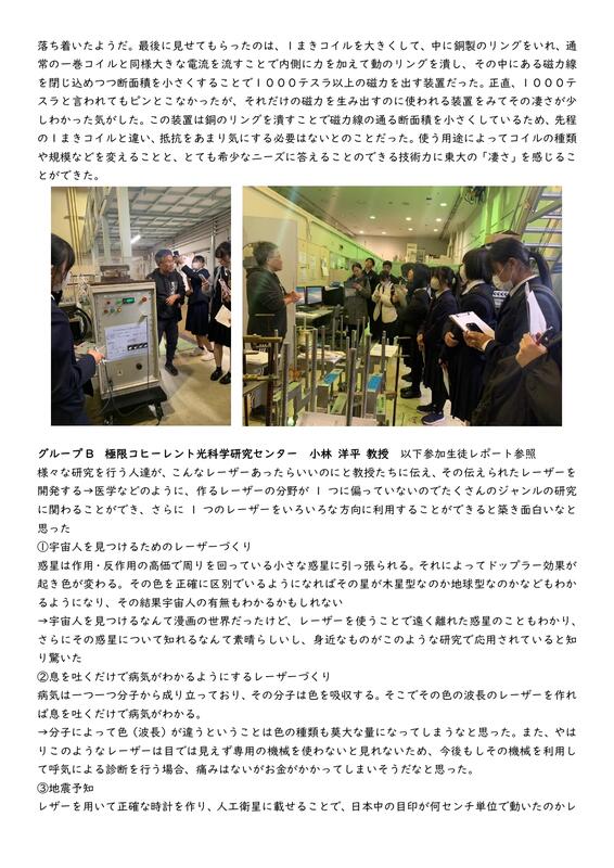 SSH一期生である79回生の希望者30名を引き連れ、東京大学の柏地区キャンパスラボツアーに行って参りました。