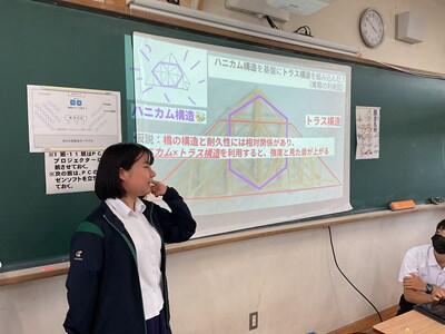 最終コマ(9月13日)は校内パスタブリッジコンテストが実施されました。審査委員は管理職を含む3名が行い①プレゼンテーション(2分)、②橋の独創性(デザイン)、③橋の強度の3点について審査を行いました。全ての班が試技の時の記録を大きくクリアし、大変盛り上がりました。