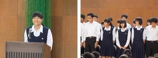 141期生徒会代表の新たに生徒会長になった赤崎真子さんの話がありました。