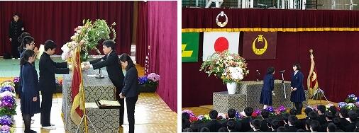 また,記念品贈呈式では在校生から卒業生に卒業証書ホルダーが贈られました。
