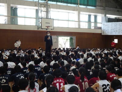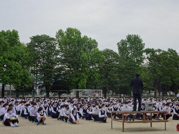 5月19日(木)7時間目、新型コロナの感染予防に十分配慮しながら、3年ぶりの全校での