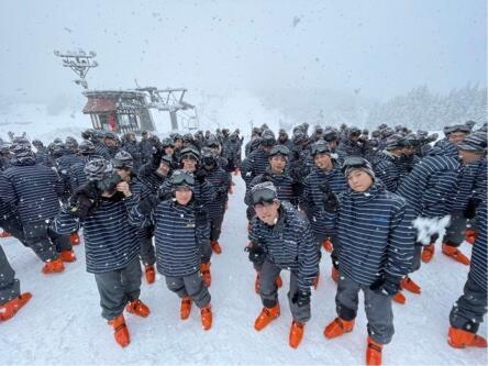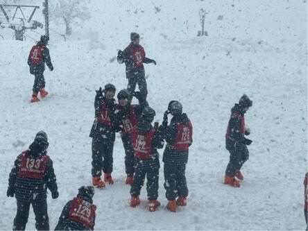 本日はスキー研修①。ホテル裏のスキー場は連日の降雪で少し降り過ぎなくらいの状態です。班ごとにインストラクターより講習を受け、徐々に滑ることができるようになっています。
