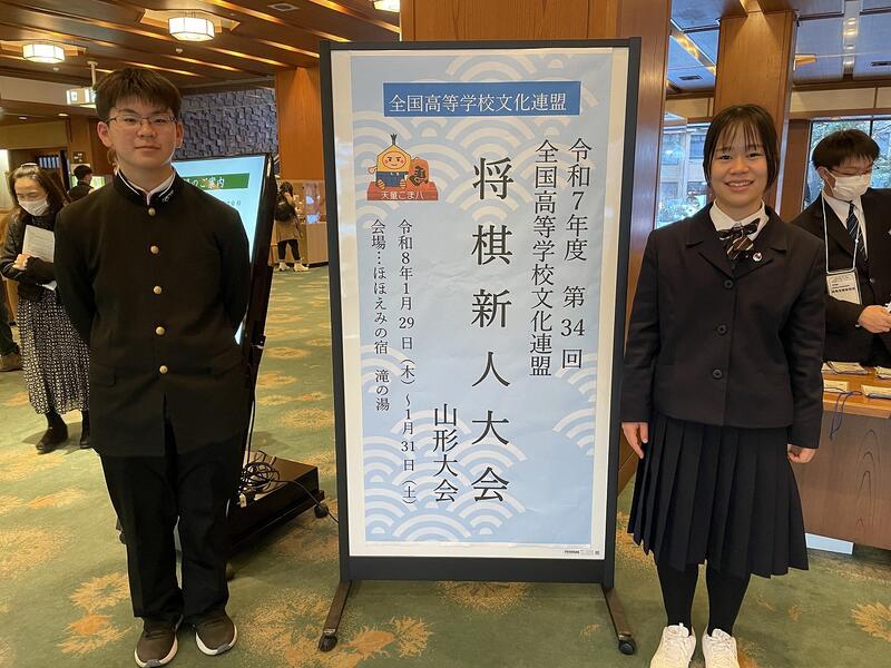 令和7年度第34回全国高等学校文化連盟将棋新人大会 予選 男子個人 第11位!(94名参加) 酒井(1年)※決勝トーナメント進出! 女子個人 第11位!(93名参加) 青山(1年)※決勝トーナメント進出! 決勝トーナメント 2名とも第1回戦にて惜敗 1年生2名が今回参加いたしましたが、2年生も参加する中素晴らしい成績を残してくれたと感じました。次年度に繋がるものと考えています! |