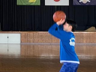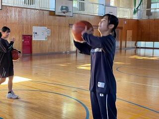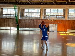 朝早く、バスケットボール部の生徒が自主練でシュート練習!