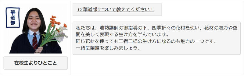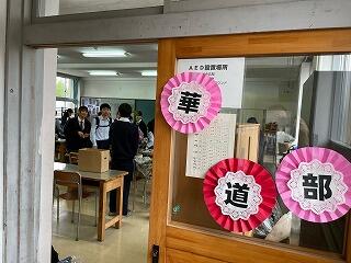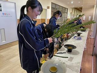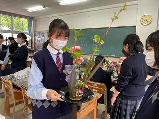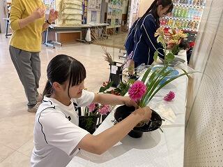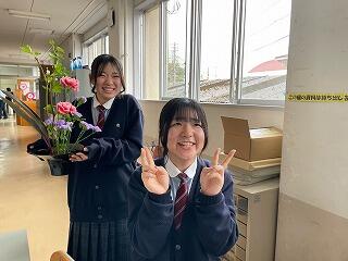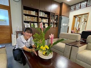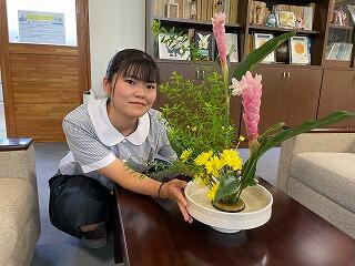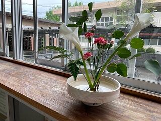 本格的な生け花は、学校の廊下を華やかにしてくれます。華道部希望の生徒も多いようですね。