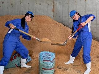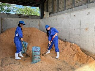 帰りには、養鶏の専攻の生徒がおがくずを集める作業をしているところにおじゃましました。