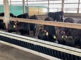 牛舎の中に実際に入って、実習の様子を確認しました。約20頭飼っている肉用牛についての説明を受けました。