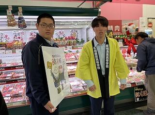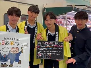 マックスバリュ早水店で畜産科の養豚班が「お米豚」の販売を行いました。