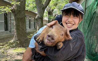 畜産科では、毎日牧場で牛、豚、鶏を育てることで、日々実践を通して学習しています。学習する中で、命の大切さを学んでいます。