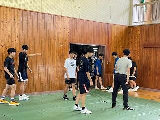 そこで、バスケットボール部・バレー部の生徒で、体育館シート引きを行いました。