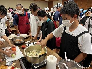 今日は仲間作りでカレー作りコンテスト。カレー作りを通して、楽しく各学校の役員と親睦を深めているようです。