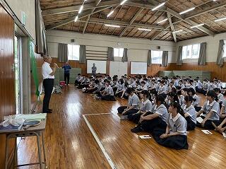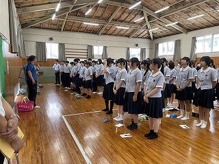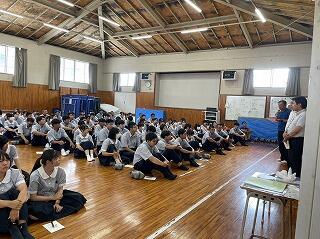 明日の修学旅行前に、学年集会を開き旅行会社からの説明も受けました。