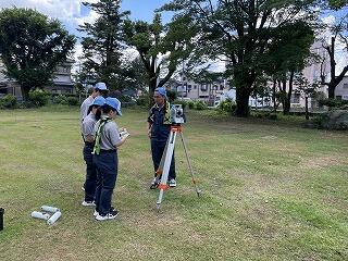 夏休みに入ってすぐ、1年生は校内で測量実習を行います。