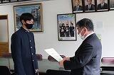 新型コロナウイルス感染症の影響で、3月1日の卒業式に出席できなかった生徒の卒業式を本校第一会議室で行いました。卒業証書の授与、校長先生からの式辞、農業土木科池田君の答辞の後卒業式は締めくくられました。