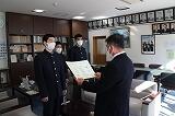 放課後、全校集会の放送で紹介された表彰者への授与式が行われました。おめでとうございます。