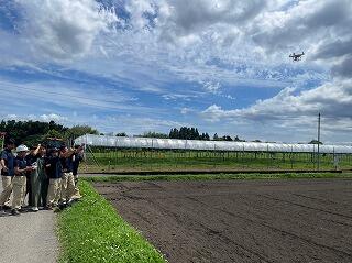 生徒たちはドローン操作は初めてでしたが、航空法の指導をうけながら、初めて見る空からる農場の映像に、驚きながら楽しんで操縦していました。
