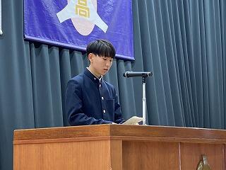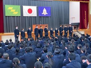 3学期始業式・表彰式が行われました。生徒代表スピーチでは、2学期の反省を踏まえて、3学期の抱負について語りました。特に3年生は、4月からの進学や就職に向けて、より一層気を引き締めている様子が見られました。