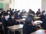 コロナウイルス感染症対策のため、終業式は各教室で放送を聴く形で行われました。各種表彰の後、校長先生の話、校歌静聴、学年代表生徒によるスピーチ、各部連絡と続きました。終業式の後、本をたくさん読んだ多読賞と皆勤賞の表彰が各クラスで行われました。