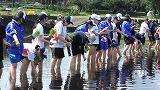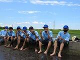 素足で水田の中に入っていくときには、悲鳴のような声も上がり、手を取り合いながら一列に並び植えていきます。中には、初めて田植えを経験する生徒もおり、クラスでも交流を深めるよい機会になったことと思います。