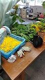 露地農場では、緑肥用に育てたヒマワリが満開でした。施設野菜専攻は、ミニトマトを収穫後、品種ごとにジャムを作りました。草花専攻は、香りのする樹木の枝とヒマワリを使った「森林浴スワッグ」をつくりました。2日目の昼食は、農場で育てた野菜を素揚げして食べました。連日35℃を超える猛暑でしたが、頑張りました。
